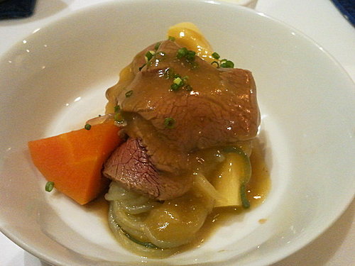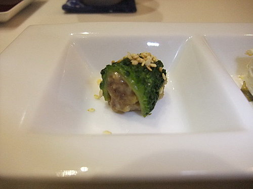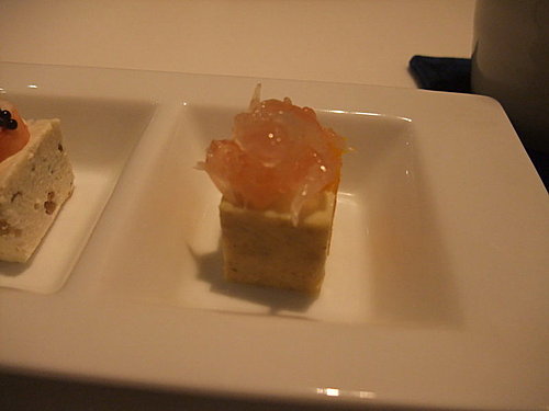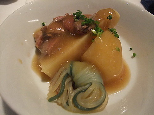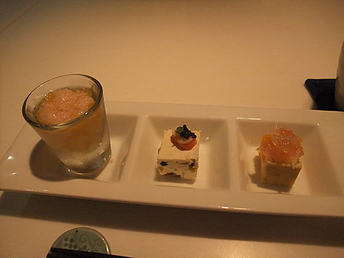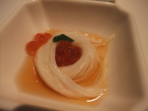 鮭魚卵搭配山藥麵線的精緻小點滑嫩爽口,由於生山藥會引發Rabbit胃痛,師傅們還貼心的幫她更換了菜色………