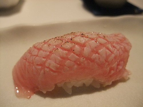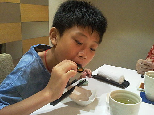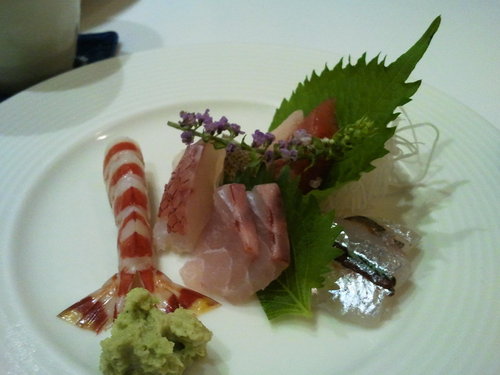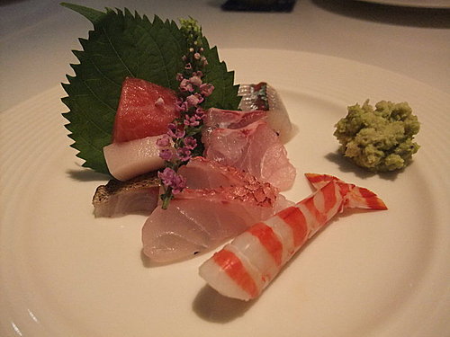 新鮮食材、烹調得宜,生魚片直叫人讚嘆不已!!尤其是那佈滿雪花般油脂的黑鮪魚………旗魚、大車蝦……由淺色魚吃到深色魚,滑嫩、彈牙的口感……新鮮魚獲的鮮甜搭配來自阿里山的新鮮山葵一次次在口腔中化開,味蕾的享受莫過於此!!